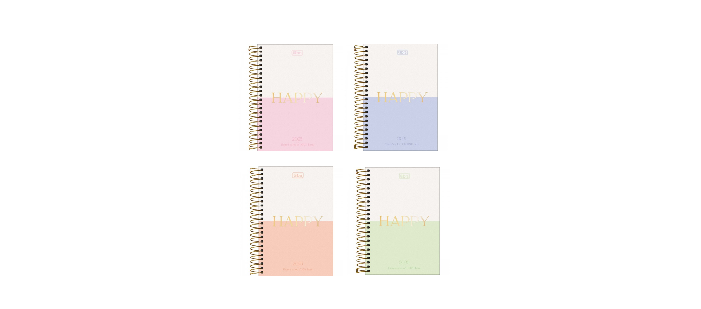 Se você busca um produto inspirado nas principais tendências de moda para se organizar, a agenda espiralada Happy da Tilibra é a escolha perfeita. O produto tem tamanho 12,9 x 18,7 cm, capa dura com detalhes metalizados, bolsa de papel, adesivos e folhas com visão de 1 dia por página, exceto aos sábados e domingos.
