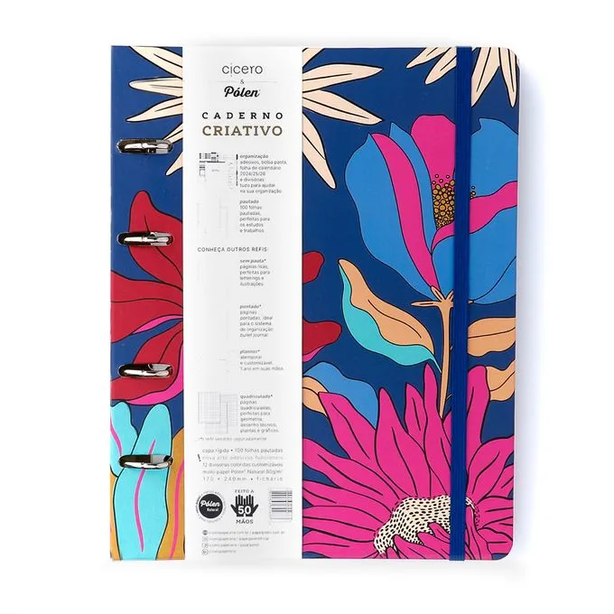 Caderno Criativo Argolado Pólen Pautado 17x24 Tropicália Azul é um fichário com 4 furos e um elástico de segurança, com estampas exclusivas criadas para sua rotina ficar sempre cheia de estilo e super organizada. Um produto completo e versátil para organizar ideias, estudos, clientes, receitas e o que mais você precisar. Este possui: