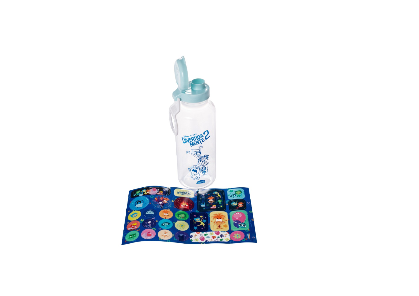 Lidar com as nossas emoções e sentimentos é um aprendizado constante. E com os personagens do Divertidamente entendemos como cuidar disso de forma bem-humorada e gentil. - A garrafa Abre Fácil já era um sucesso e agora nos apresenta sua nova versão: FUN. Ela acompanha uma cartela de adesivos para que você possa customizar o produto com seu personagem preferido e suas singularidades. - Alça que facilita o transporte. - Fabricado em plástico polipropileno