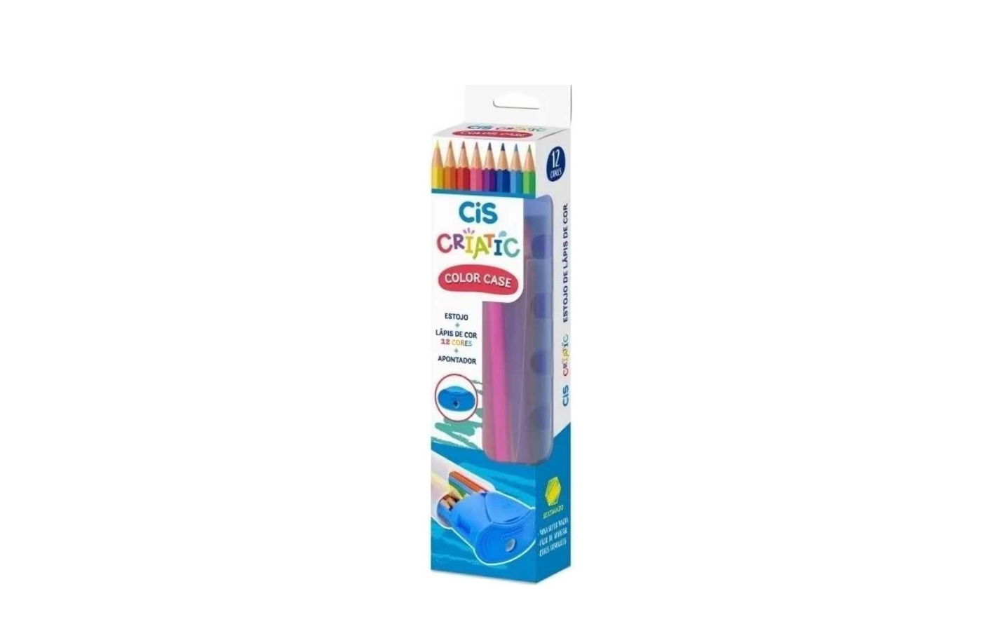 O Estojo Criatic Color CIS é composto de estojo de plástico com 12 lápis de cores vibrantes. Ainda para completar o kit, já no estojo tem um apontador com depósito integrado! Olha que incrível! Esse estojo da Cis já vem com 12 lápis coloridos, de excelente qualidade e escrita macia, e também com um apontador com depósito embutido. Perfeito para levar para a escola ou para organizar o material em casa mesmo. Color Case Cis Criatic Estojo + Lápis de Cor 12 cores Sextavado + Apontador com depósito. Nas cores Azul ou Rosa.