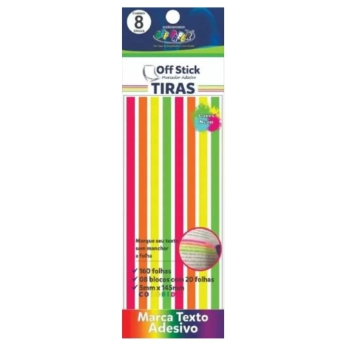 Marca-Texto Adesivo de Tiras 5X145mm Off Paper Stick 8 Blocos 20 Folhas Neon