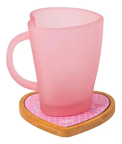 Contém 1 caneca de 250ml e 1 porta copo de coração MDF