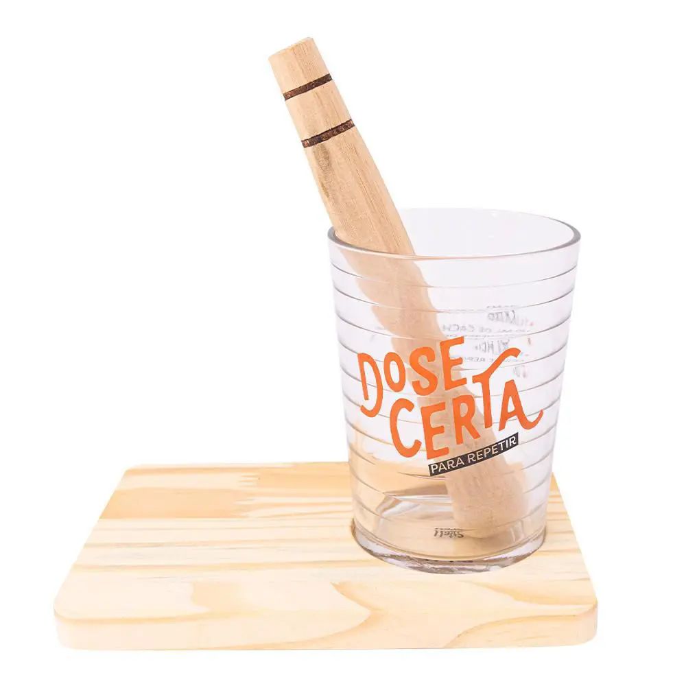Se a vida te der limões… Faça uma caipirinha! Nosso Kit Caipirinha, da coleção Open Bar, é tudo que você precisa pra deixar essa iguaria ainda melhor. O Kit Caipirinha conta com um copo de 400ml, um socador e uma tábua em pinus, tudo desenvolvido pro seu drink sair perfeito! Bebidas e um ótimo petisco pra acompanhar os momentos de alegria com quem amamos: essa é a verdadeira fórmula da felicidade! E pra dar aquele toque especial, uma coleção que é a sua cara. Garanta seus itens e… CHEERS! Material: Vidro e pinus. Contém: 1 copo, 1 socador e 1 tábua. Dimensões: Copo: 15 x 9 x 9 cm. Tábua: 18 x 12 x 1,5 cm. Socador: 18 x 3 x 3 cm. Volume: 400ml Dimensões: 15x9x9 cms Cuidados: Vidro: Lavar com sabão e esponja macia. Não usar abrasivos. Choques térmicos, quedas e impactos podem danificar o produto. Socador e tábua: Lavar com água e sabão neutro. Não usar produtos químicos e abrasivos. Secar com pano macio. Quedas e impactos podem danificar o produto.