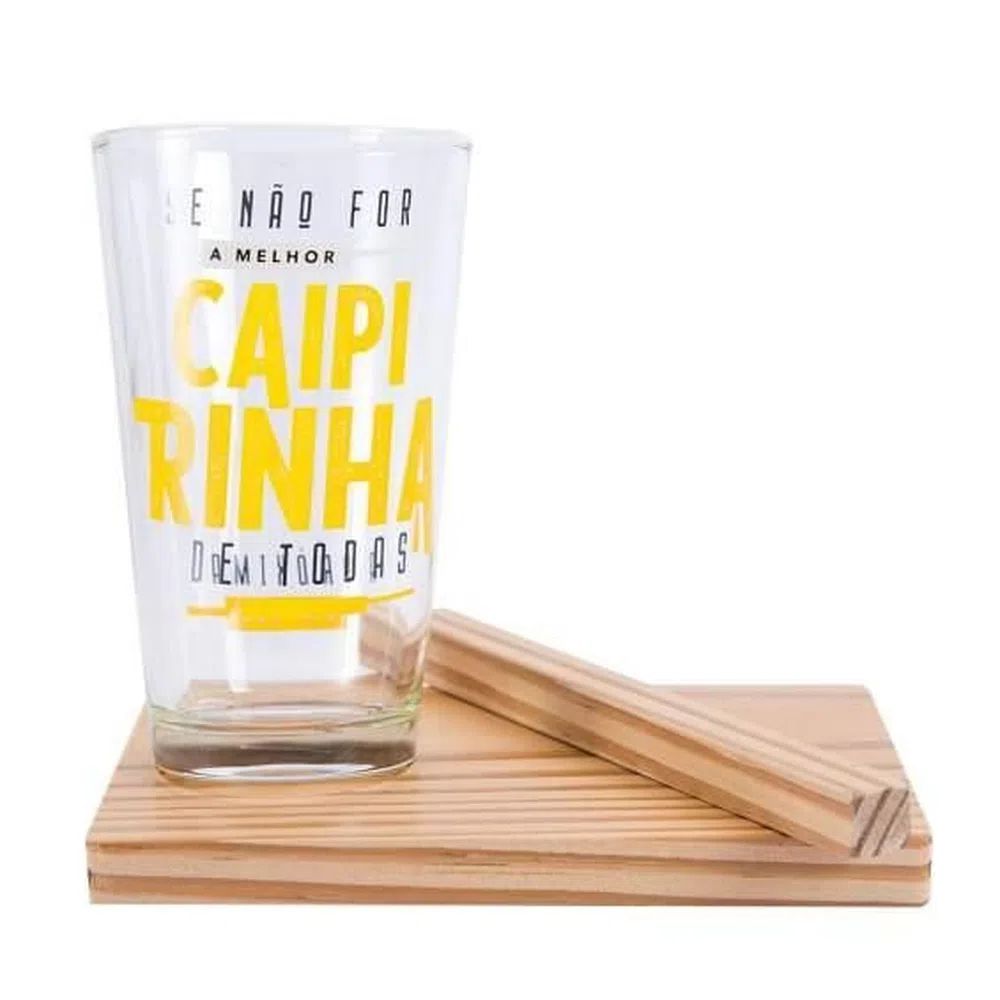 Um kit de qualidade composto por uma tábua, um socador e um copo de vidro, que vai proporcionar mais praticidade no preparo das suas bebidas .