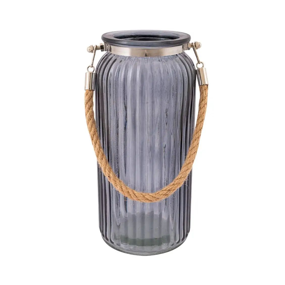 Material: Vidro, corda e metal Contém: 1 vaso Cuidados: Lavar com água, sabão neutro e o lado macio da esponja, secar bem. Impactos e quedas podem danificar o produto.